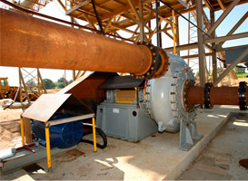 Walding dredge booster unit pumping 7,300 GPM sand and gravel slurry.